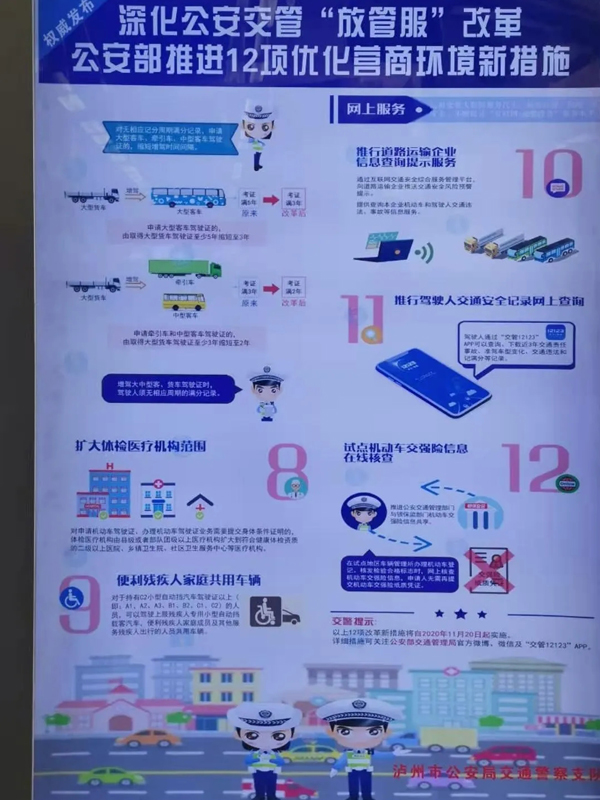 公安部交通管理局局長(zhǎng)李江平通報(bào),圍繞做好“六穩(wěn)”工作、落實(shí)“六?!比蝿?wù),優(yōu)化營(yíng)商環(huán)境,公安部交通管理局在總結(jié)改革實(shí)踐經(jīng)驗(yàn)的基礎(chǔ)上,廣泛聽(tīng)取社會(huì)各界意見(jiàn)建議,主動(dòng)回應(yīng)群眾企業(yè)需求,進(jìn)一步推出12項(xiàng)改革新舉措,最大限度減輕群眾和企業(yè)辦事負(fù)擔(dān),惠民利企、賦能發(fā)展,助力推動(dòng)高質(zhì)量發(fā)展,構(gòu)建新發(fā)展格局。